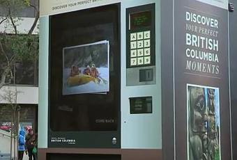 L'office du tourisme de la Colombie-Britannique a lancé une campagne de communication les 100 BC moments en mettant à la disposition des passants de San Francisco un distributeur géant qui contenait des vélos, planches de surf et canoës gonflables.
