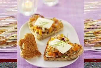 4° Faites griller les tranches de pain, laissez-les tiédir un peu et étalez la crème de Caprice des Anges dessus.
