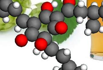 Les humulones, issues du houblon lors du brassage de la bière, confèrent à la boisson son goût particulier, permettent à la mousse de maintenir une certaine cohésion et ont des propriétés antibactériennes et antioxydantes. Ces moléculesacides possèdent le plus souvent un cycle de cinq atomes de carbone. © Werner Kaminsky