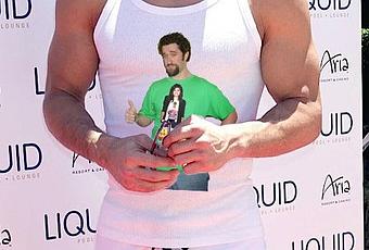 L’acteur Mario Lopez, ancien de la célèbre série pour adolescents « Sauvés par le gong », était pris en photo en 2011 (ci-dessus) avec un bien étrange tee-shirt. Il portait un tee-shirt représentant Justin Diamond, portant un tee-shirt représentant Tiffani-Amber Thiessen, portant un tee shirt représentant Justin bieber, portant un tee-shirt représentant Tiffani-Amber Thiessen… Si, si, c’est vrai.
