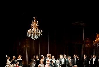 Toutefois, le travail est plus fin qu'il n'y paraît: d'abord, en déplaçant l'intrigue à la Belle Époque (costumes de Tanya Mc Callin qui signe aussi les décors), il insiste sur les derniers soubresauts de cette bourgeoisie qui génère des Traviata, un chant du cygne.