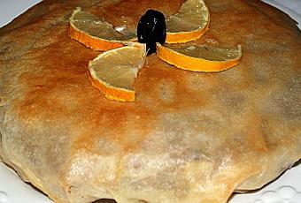 Enfourner la pastilla dans le four préalablement préchauffé pour à peu près 45 minutes ( plus ou moins selon les fours ). La pastilla devra être bien dorée sur toute sa surface ainsi que les bords et le fond, et croustillante.