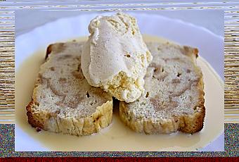 Couper en tranches et servir tiède avec une boule de glace à la vanille ou de la crème anglaise.