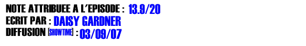 La série devient plus intelligente le temps d'un épisode et malheureusement, le timing est pas génial puisque l'intrigue de l'épisode n'était pas très passionnante. J'ai quand mis 13,9 parce qu'on sent des idées intéressantes et enfin un semblant de construction même si ça paraît pas toujours parfaitement maîtrisé. Trop poussif à certains moments, mais c'est mieux que rien (enfin ça dépend pour quoi).