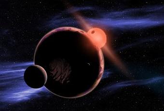 Illustration d’une planète de taille équivalente à la Terre en orbite dans la zone habitable autour d’une étoile naine rouge