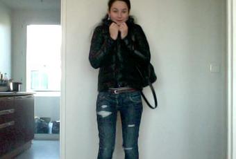 JE PORTE. Jean skinny - Zara Pull - H&M T-shirt - Petit Bateau Top - Petit Bateau Boots - Minelli Écharpe - Galeries Lafayette Doudoune courte - Mango Sac bowling - Zara