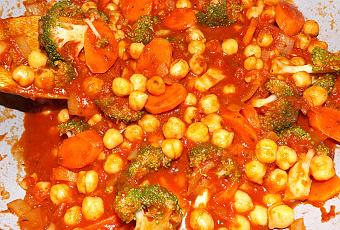 -Ajouter le pot de sauce et les pois chiches et faite cuire le tout à votre goût.