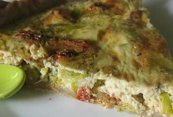 Déposer les poireaux précuits, les tomates séchées coupées en morceaux, et verser la préparation ci-dessus.