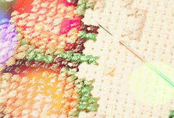 Au fil des brins teintés je trace des formes sur la toile en me laissant guider par les harmonies formelles et chromatiques. Les nouveautés printanières seront croisées et non désuètes, tracées par l'aiguille et la fibre, elles paraîtront sensiblement graphiques et auront le teint frais...