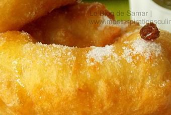 De délicieux beignets marocains ( سفنج ) très facile à réaliser, une version de sfenj sans semoule. Ces beignets sont présentés saupoudrés de sucre ou miel accompagné de thé à la menthe.