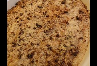 Dans un plat un gratin huilé, verser le mélange viande/oignon/tomates, la purée par dessus et enfin parsemer la purée du mélange poudre de lardons et chapelure.
