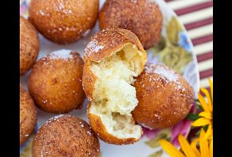 Mettre l’eau, le sel, le sucre et le beurre dans une casserole et porter à ébullition. Retirer du feu, ajouter la farine, mélanger celle-ci et dessécher à feu vif, en remuant avec une cuillère jusqu’à ce que la pâte n’attache plus. Ajouter alors, et complètement hors du feu, les oeufs deux par deux, en ayant soin de bien les incorporer à la pâte avant d’en mettre de nouveau. Quand tous les œufs ont été absorbés par la pâte, compléter celle-ci avec de l’eau de fleur d’oranger. Mettre cette pâte par parties de la grosseur d’une petite noix dans la friture modérément chaude ; augmenter ensuite progressivement la chaleur de la friture pour assurer le développement de la pâte et bien sécher les beignets. Les égoutter sur un linge, les saupoudrer de sucre fin, les dresser sur serviette.