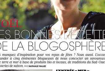 Dans son édition Aquitaine de décembre 2012, Madame Figaro présente les recettes de Noël de la blogosphère. Parmi elles, Anne de Papilles & Pupilles, Joëlle du Coin de Joëlle, Audrey de Ma Ptite Cuisine, Pauline de Happy Food Blog et moi-même. Vous pouvez retrouver la recette de carpaccio acidulé ici même. Bonne journée!