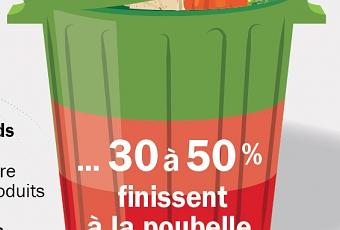 - Le chiffre est ahurissant. Un tiers de la production alimentaire mondiale ne finit pas dans nos estomacs mais à la poubelle. Entre surproduction, normes esthétiques aberrantes, conditionnement XXL, ce sont tous les excès de notre société d'hyperconsommation, incitant à fabriquer et à jeter toujours plus, que traduit cet énorme gaspillage.