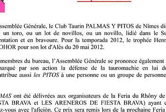 La coordination des clubs taurins de nîmes et du gard communiquent