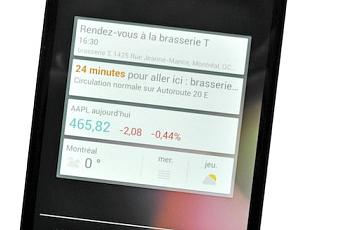 Il offre un condensé des informations que vous trouvez habituellement sur Google Now. Ce qui vous permet d’obtenir en un coup d’oeil le temps nécessaire pour vous rendre à votre prochain rendez-vous, la météo locale, les cours boursiers et les films à l’affiche qui pourrait vous intéresser. Tout ça directement sur votre écran d’accueil. Pour obtenir ce widget, il suffit de mettre à jour Google Search.
