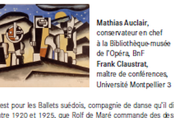 « Des hommes et des oeuvres » le 19 Février 2013 à 18h15 - un homme ROLF de MARE -une oeuvre -dessin de Fernand LEGER pour la création du monde-ballet suédois 1923-avec Mathias AUCLAIR conservateur en chef bibliothèque musée de l’Opéra et Frank CLAUSTRAT maître de conérences Université de