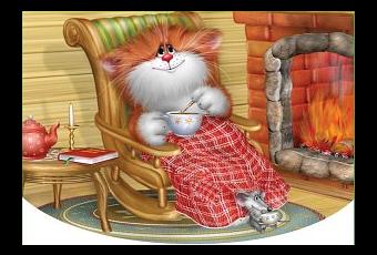 Le chat et le samovar sont deux symboles du confort domestique et peuvent donc être représentés ensemble. Le Chat est le gardien de la maison contre les rongeurs et les mauvais esprits, il sait détendre ses maitre et maintenir une bonne atmosphère dans la maison, le samovar, quant à lui garde prépare l’eau chaude pour le thé que l’on servira aux invités, c’est le garant de l’hospitalité.