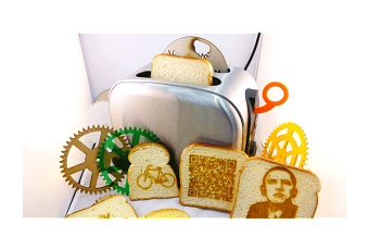 Ce toaster réinventé est capable de customiser des messages sur les toasts, à destination des gourmands : mari, enfants, colocataires… La tête de Barack Obama peut apparaître, tout comme une bicyclette, un cœur, des devinettes, ou encore un pense-bête pour se rappeler… d’acheter du pain bien sûr !
