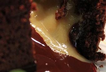 2)Entre-temps, faire chauffer le beurre et le chocolat noir dans un bain-marie; incorporer les oeufs, la farine et le sucre.