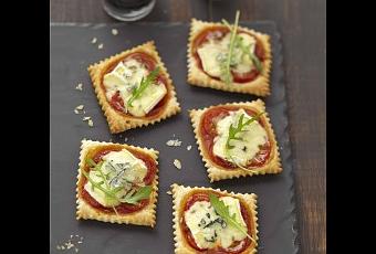 Préchauffez le four à 180°c, thermostat 6. Taillez la pâte feuilletée en petits rectangles à l’aide d’une roulette à pâtisserie cannelée ou d’un couteau. Déposez les rectangles de pâte sur une plaque de four recouverte d’une feuille de papier sulfurisé. Assaisonnez le coulis de tomate, répartissez-le sur les rectangles de pâte en laissant 3mm sur les bords. Lavez et taillez les tomates cerises en tranches, déposez-les sur le coulis de tomate. Taillez le BRESSE BLEU en petits morceaux, déposez-les sur les tomates. Parsemez les minis pizzas de graines de carvi, arrosez-les d’huile d’olive. Mettez les pizzas à cuire 15 à 20mn au four. Dégustez chaud. Remplacez les graines de carvi, par du cumin ou plus simplement par des herbes de Provence.