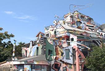 Slovaquie, à 15 mn du centre ville, l'hôtel est peint à l'intérieur, comme à l'extérieur, du sol au plafond à croire que