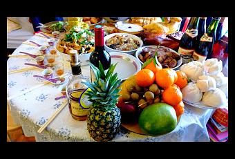 J'ai commencé à vous parler dans le post précédent, de la cérémonie du nouvel an. Il faut savoir que cette cérémonie a lieu la veille du nouvel an. C'est en quelque sorte le réveillon chinois.Mais que trouve t on dans ce banquet ? Parmi les plats traditionnels, il y a des choses que je trouve plus ou moins bonnes. Voici ce qu'on y retrouve :- Même si les familles ont peu de moyens, il y a 3 plats indispensables que sont le poulet au soja, le porc et le canard laqué. Il est donc assez logique que ces plats trônent de manière centrale sur la table.