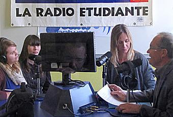 Voici ses premiers mots dans le micro, en présence de Alain Enjolras, CPE et directeur de la radio, deux lycéennes et Dominique Lin, secrétaire de l'association ELU.