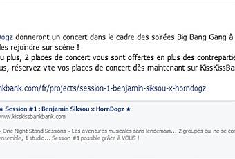 Trois petits clics ici donc, contribuez à votre manière et vous serez parmi les 80 kissbankers et plus, fiers d'avoir participé à la production d'un maxi-vinyl, fruit de la rencontre unique de Benjamin Siksou et des HornDogz après une nuit de débauche musicale en studio... et peut-être plus si affinités.