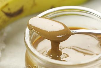 Écraser la banane dans le lait concentré et remplir un pot type bocal à conserve (avec joint) ou pot de confiture hermétique, bien serrer.