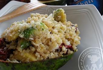 Couper l’avocat en 2 et videz la à l’aide d’une petite cuillère. Vous obtiendrez ainsi directement de petits morceaux. Réservez dans un saladier. Arrosez de jus de citron. Conserver les 2 coques de l’avocat.