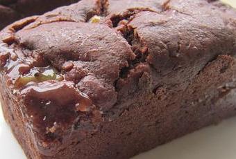 La gelée (ou confiture) de fruit kiwi-banane ajoutée dans le cake est facultative : j'en ai profité pour y recycler un pot de gelée ratée, que j'avais préparé à base d'agar-agar : malheureusement j'avais trop forcé sur la dose et la gelée était totalement figée, dure comme du béton. Pas très agréable à tartiner, cette gelée s'est avérée un très bon fourrage dans les gâteaux : contrairement à la confiture qui bout en cuisant dans le gâteau et a tendance à se répartir dans la pâte ou à couler sur le dessus, cette préparation se ramollit à peine et reste bien au coeur du cake. Le contraste chocolat - kiwi est excellent, il ne me reste plus qu'à aller rater une autre confiture pour pouvoir en refaire....