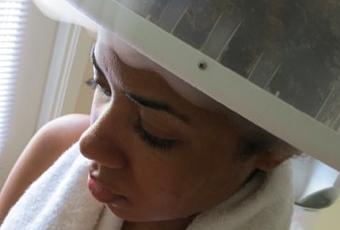 Lavez vos cheveux et enduisez les du soin choisi. Si possible, peignez les avant de placer votre tête sous l’appareil. N’oubliez pas de mettre une serviette sur vos épaules, pour éviter les écoulements de vapeur. Et n’hésitez pas à faire peau neuve également, puisque l’appareil possède une fonction qui permet de faire des soins vapeur pour le visage, en ouvrant vos pores et en préparant votre peau au gommage et au masque.