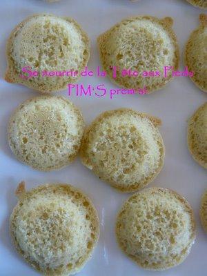 D'abord, il vous faut une génoise. Et là, figurez vous que j'ai découvert un blog. Ah! ça vous la coupe hein? Ben ouais, surtout que celui là, je ne sais pas comment j'ai fait pour passer à travers. C'est réparé.Tant qu'à faire, lisez sa recette de génoise, farpaite. Et puis si tu as des empreintes à mini tartelettes tu mets dedans. Sinon, ben, tu utilises le fond d'autres mini moules. Si t'as pas non plus, tu étales sur du papier sulfurisé, tu cuits (7 ou 8 mn, pareil) et après tu emporte-pièce. Ça doit marcher.