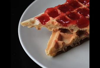 Faites cuire la pâte dans un gaufrier, et les déguster chaudes de préférence.