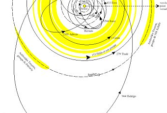 - Amor : à leur périhélie, leur distance au soleil est comprise entre 1,017 et 1,3 UA. L'orbite de ces astéroïdes entrecoupe celle de Mars sans atteindre celle de la Terre