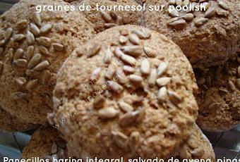 Hoy unos panecillos muy sanos para el desayuno. Con IG bajo por supuesto, podeis sin problema consumirlos en desayuno GP (para los que comen con el método Montignac). Harina de trigo integral, salvado de avena y pipas para aún bajar en IG y la utilización de la poolish, mas sano que la levadura simple (menos sano pero menos pesado a obtener).