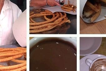 Saro, 70 ans, du bleu sur les yeux, vendeuse de churros à El Puerto de Santa Maria, elle se raconte un peu trop vite, le temps que la pâte dore dans l’huile, elle montre la photo de l’acteur espagnol qui vient dans sa petite boutique, elle est fière, son fils est avec elle, il dépose devant elle le churros qu’elle coupe en morceaux, que nous emportons plus loin au café pour pouvoir les plonger dans le chocolat chaud, c’est une tuerie !