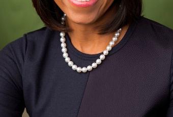 Sur le nouveau portrait, la première dame des Etats-Unis, porte aussi un collier de perles, tout comme sur la photo officielle datée de 2009.