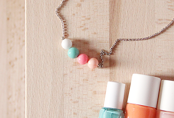 En allant visiter le showroom Dawanda je suis repartie avec un tote bag rempli de goodies dont ce joli collier aux couleurs pastels de la créatrice Laeti Grena. Je me suis amusée à trouver les vernis correspondant : le Where's My Chauffeur d'Essie, le Heli et Elsa de Nailmatic ! Pour être totalement raccord il faudrait que je trouve un vernis rose sirop ^^
