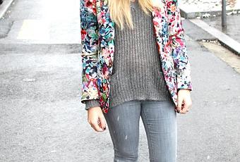 Moi qui pensais pouvoir laisser mes moon boots au placard... me voilà sous la neige.En bref, un total look gris, cassé par un blazer fleuri et mes Anouk glitter !