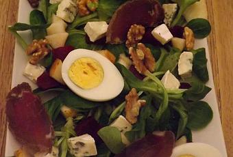 Salade de mache au bleu et aux noix au vinaigre balsamique de violette