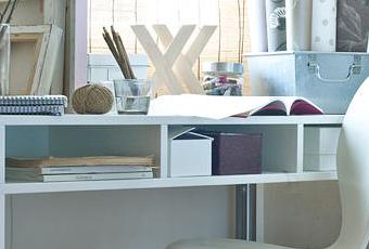 Tout de blanc vêtu et très fonctionnel avec ses nombreux rangements, cet atelier-bureau très lumineux permet à Audrey de trouver l’inspiration et de développer sa créativité…