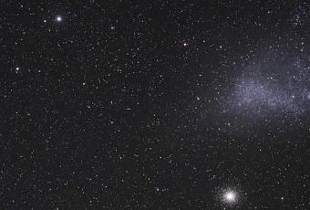 La comète Lemmon photographiée par A. Cherney lors de son passage dans le voisinage du Petit Nuage de Magellan et de l’amas globulaire 47 Tucanae