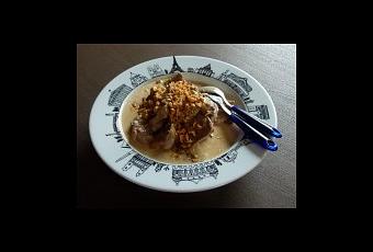 Quand c’est cuit, mettez les tranches de côté au chaud pour faire la sauce avec un bon peu de crème fraîche à feu doux et laissez mijoter doucement.