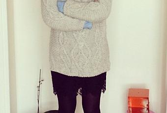 Bon, chez moi on se les gèle, alors les tenues en ce moment, c'est hivernale-tu-resteras. Mais l'on en oublie pas pour autant de rester féminines. On mix gros pull et collants bien opaques, avec une jupe courte et des bottines à (très) hauts talons!