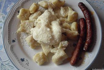 Traditionnellement, à la maison, les gnocchis se servent avec des saucisses à griller!