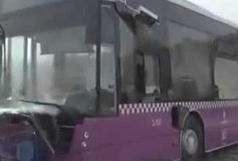 Suite à une collision avec une voiture, ce bus d'Istamboul a percuté une borne d'incendie. Les passagers ont eu du mal à être évacués.