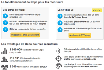 3/ Plus besoin pour les recruteurs de payer des petites annonces traditionnelles (montant de l'ordre de 600 à 800 € !). Car Qapa s'est coulé dans un modèle économique à la performance...