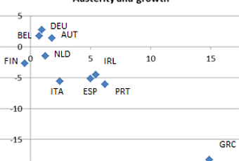 Plus l'austérité est forte (en abscisses), plus la régression est forte (en ordonnées), avec une corrélation de 84%.